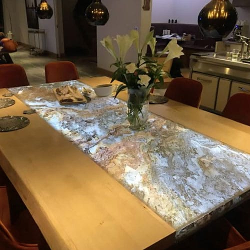 Descubre la belleza inigualable de nuestras Placas de Piedra Traslúcida que crea una fusión perfecta entre la elegancia natural y la tecnología de iluminación LED.